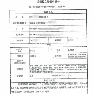 ▲公司设立登记申请书