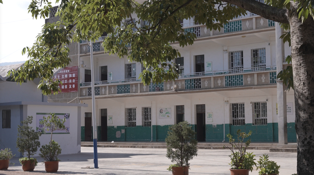 时至今日,学校唯一的教学楼楼龄已有40多年,何国成称之为“本地最老的楼”,楼梯和走廊的墙面多处剥落,教室的天花板也坑坑洼洼。