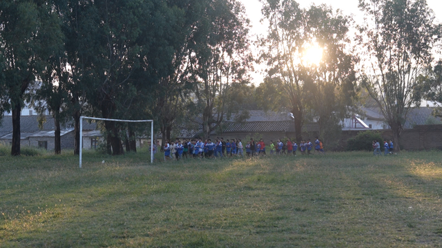 9月底的傍晚,日光变得稀薄。站在这座老旧的球场眺望,苍山的轮廓影影绰绰,暗紫色的晚霞和橘色的云盘旋在山顶。球场另一侧挨着农场主街,主街刚亮了灯,街上的大小商铺,大多是场上球员们的父母开的。父母们在店里等着训练结束,接孩子回家。