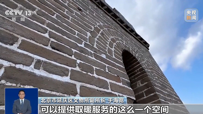 北京市延庆区文物所副所长 于海宽:这个痕迹,这是当时的一个木窗的位置,说明当时整个敌台除了有顶之外,整个所有的圈洞圈窗都是封闭的,都是在冬天这是一个独立的可以提供取暖服务的这么一个空间。