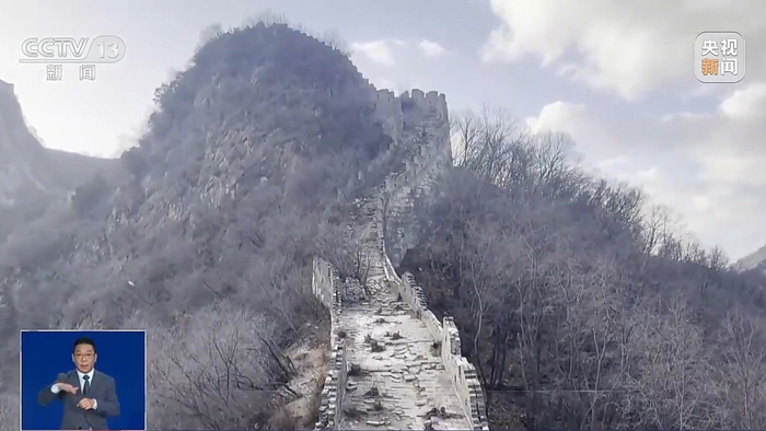 总台记者 邵薇:经过1小时徒步,我现在来到了箭扣长城将军守关的142号敌楼,古代用于军事瞭望、传递信号。为了作业安全,冬季长城的修缮工作已停止。可以看到我身后这处是未经修缮的长城旧貌,坍塌比较严重,抗自然灾害能力弱,所以排险、加固的修缮工作十分必要。