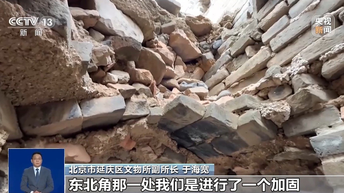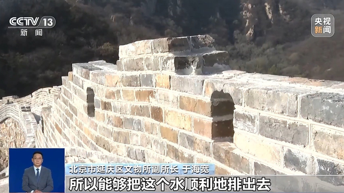 北京市延庆区文物所副所长 于海宽:我们通过清理完成之后的这些土层里边筛出的这些碎的灰块、砖块,后续我们会根据文物修缮里边有一个叫可识别性,在缺失的比较多的部分,用现有的这些碎的砖块、灰块给它填充,做一个可识别性的保护,因为碎砖块它里边没有灰浆,所以能够把这个水顺利地排出去,同时也保证了咱们这个修缮完了,这个长城的一个相对完整性和可识别的最终的效果。