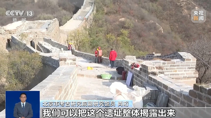 北京市考古研究院副研究馆员 尚珩:北京的一些长城保护工作,当时是没有考古工作介入的,只是在地面上观察长城的遗址,你会发现这种做法其实具有很强的片面性。就是说长城现在是一个遗址状态,我们并不了解当年是什么样子的,它的病害根源是在哪里,它的建筑形制跟工艺做法是什么,我们都不是很了解。但是有了考古工作介入之后,我们可以把这个遗址整体揭露出来,让它完完整整地,全面展现在方案制定者的眼前,这样我们再去修长城的话,我们再制定长城保护方案的时候,我们的方案就可以做得特别全面、系统和科学,这也是我们说的科学保护长城一个非常重要的体现。
