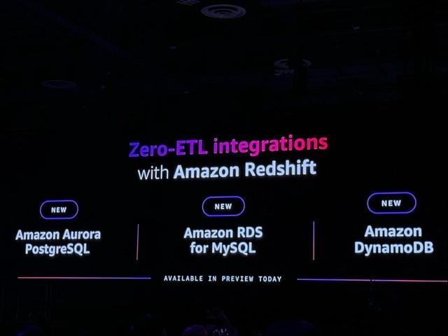 “你的数据就是你的差异化因素。”Adam Selipsky强调了数据的重要性。在生成式AI的时代,数据就是一切。从Amazon S3到关系数据库(Amazon Aurora等)和非关系型数据库(Amazon DynamoDB),再到分析和管理服务,包括Amazon Redshift、Amazon EMR、Amazon OpenSearch Service等等,亚马逊云科技提供了全面的云数据服务集合。在re:Invent上,亚马逊云科技宣布了4项新的Zero-ETL集成功能,使客户能够快速、轻松地连接和分析数据,无需构建和管理复杂的提取、转换和加载(ETL)数据管道——Amazon Aurora PostgreSQL、Amazon DynamoDB、Amazon RDS for MySQL与Amazon Redshift数据库的集成,以及Amazon DynamoDB与Amazon OpenSearch服务的Zero-ETL集成。