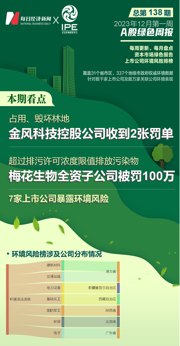 2023年12月第一周,哪些上市公司的环境保护与信披责任亮起了红灯?且看A股绿色周报第138期。