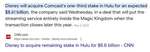 总之,Hulu 作为之前的第三方流媒体平台,对于迪士尼流媒体业务的差异化竞争是非常有价值的,所以迪士尼希望彻底控制,为自己所用。
