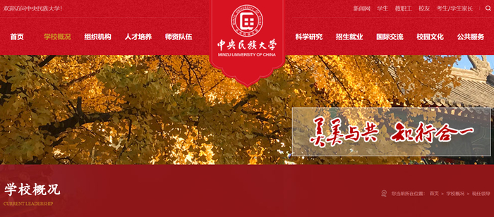 目前,中央民族大学官网校领导一栏已搜索不到田琳。