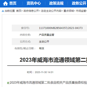 【山东】2023年威海市流通领域第二批食品相关产品质量抽查检验结果明细表