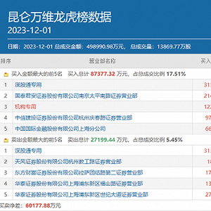 从盘后披露的龙虎榜数据来看,昆仑万维当日受到了多路市场资金的热烈追捧,其买方前五位合计的买入金额为8.74亿元,占该股总成交额的比例为17.51%。