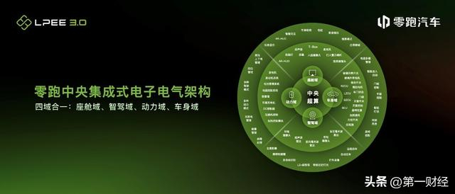 以零跑C10为例,该车采用的LEAP 3.0架构采用了集中式电子电气架构,采用1个中央超算平台+3个区域控制实现方式,中央超算平台系统融合座舱域、智驾域、动力域、车身域,实现行业首个四域合一。