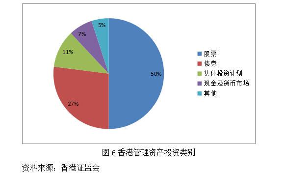 截至2022年底,香港管理的资产中大部分投资于股,占比50%,其次为债券,占比27%。