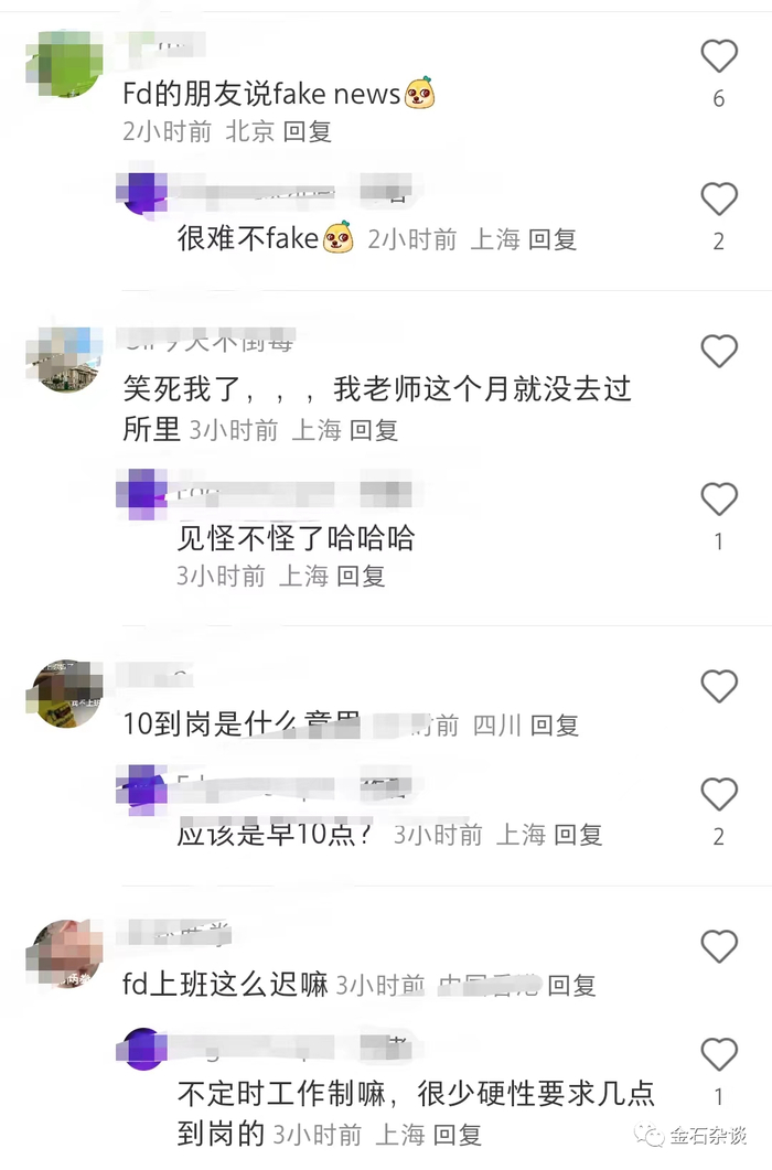 对于深陷传闻中的FD,网友说fd的朋友说是假新闻;针对10点到岗,一位律师童鞋表示,“我老师这个月就没去过所里”。