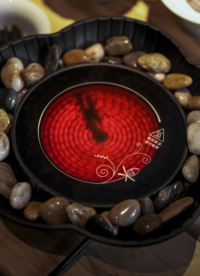 虽然是电炉,但在外观上却摒弃了“科技感”,使用陶泥做外壳,并由手工匠人修整出手工花纹,远看甚至比炭火炉还要古朴、精致。