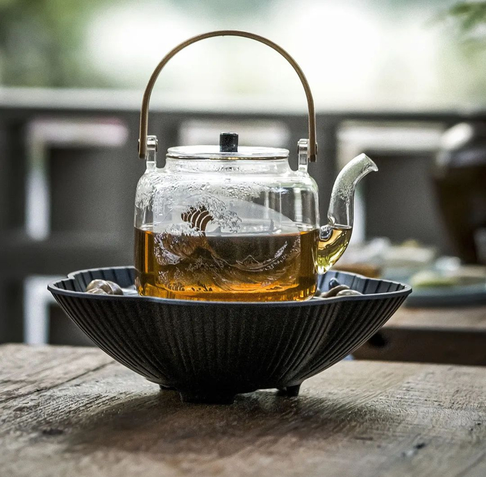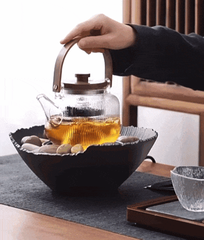 特地选用玻璃材质提梁壶,透明材质,煮茶的同时还能一起欣赏“茶舞”。