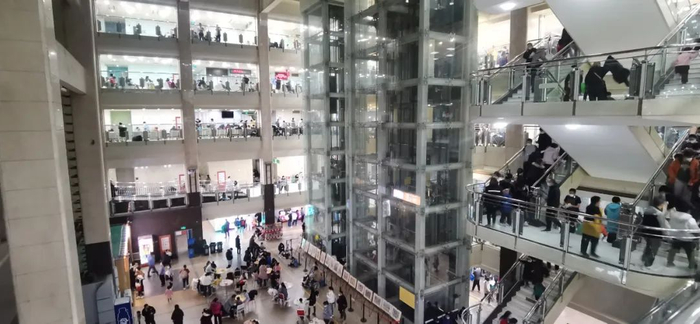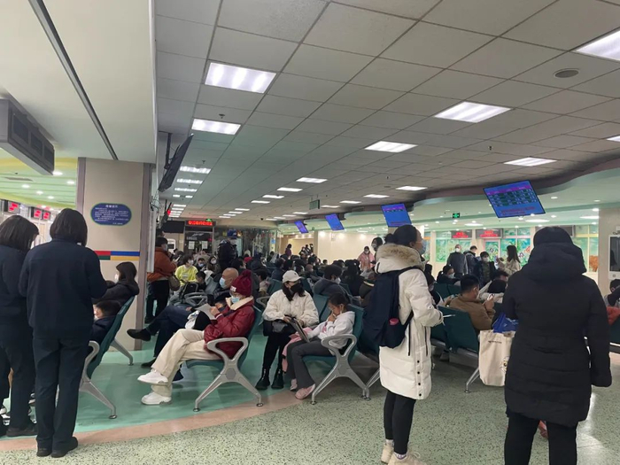 两天之前的高峰时刻,长龙从医院安检口就开始排了,二楼的楼梯也上不去,后来“完全是给挤上来、推上来的”。上来后也被人群层层包裹,完全动不了。她带着发烧的孩子,找了个楼梯拐角“猫着”,“都赶上春运现场了。”