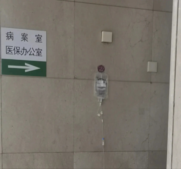 输液中心诊疗台的天花板上,吊着一圈银色金属横杆,上面密密麻麻挂着透明的输液袋。内侧墙壁有一个方形开口,更多输液袋源源不断运进来,流水线一样送达护士手中。