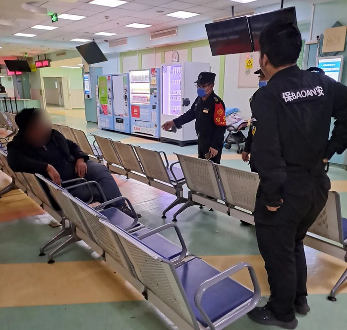 男人姓隋,他十四岁的女儿确诊支原体肺炎,需要连续输液三天,他在最后一天的零点抢号失败。全家人已经在医院度过了两天一夜。保安告诉他,这里已经没有值班大夫了,想把他劝走。男人情绪激动,一屁股坐在三楼候诊区的椅子上,“今晚就要睡这里了,不走了。”
