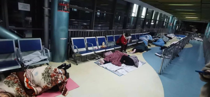 〓 凌晨1:38,急诊三楼连廊里打地铺的家长们