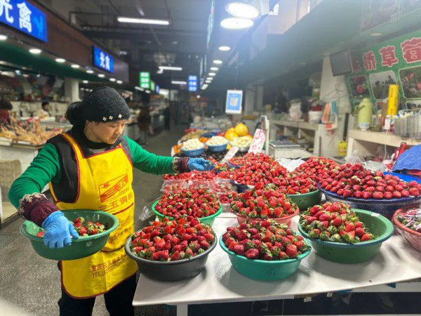 记者注意到,除了肉类摊位,水果摊位的灯具也做了更换。正值草莓上市的季节,失去了“生鲜灯”的美颜滤镜,草莓颜色自然,偶有小瑕疵,但不影响整体卖相。“我不担心生意,很多消费者都是老顾客了,每年在我这买草莓,好吃不好吃,他们都有判断。不管换什么灯,该来买的还是会来。”草莓摊位经营户韩金珍表示,这几天,生意并未因“生鲜灯”有所影响。
