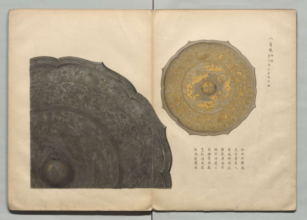 印刷局长得能良介虽属于技术官员,但其对古典文化的热爱也影响了印刷局的工作。除了刊刻《笺注倭名类聚抄》等珍稀旧籍,明治十二年(1879)得能氏还和印刷局的外国技师等人发起古美术调查,巡游日本各县,拍摄古书画、古器物照片或以彩笔绘图,再以石板印刷制作成精美的彩色图录,即明治十四年(1882)出版的《国华余芳》丛书,在当时代表着日本石版印刷术的顶尖水准,同时也借美术之力塑造近代国家认同。正如得能氏在《国华余芳》序中称,此书“成工场制品之仪范以广于世,又为培养爱国志操之具”。