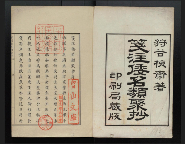 而《笺注倭名类聚抄》的出版应当放在印刷局的活字印刷实践脉络中来看待。1921年出版的《印刷局五十年略史》提到此书是在介绍活版部的篇章中,称活版部在忙于《官报》和其他官厅所需印刷品时,“又从事有益于民间的印刷,或勇于承担篇幅浩瀚的印刷工作”,如《大日本史料》《大日本古文书》,“又如明治十六年,由得能局长起意而发起刊行狩谷棭斋遗著《笺注倭名类聚抄》,常为学界所称赞”。