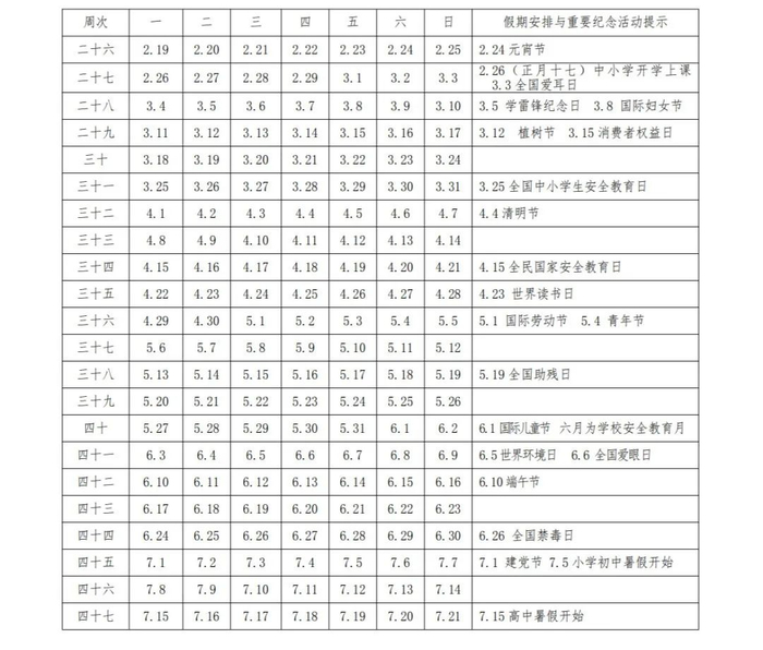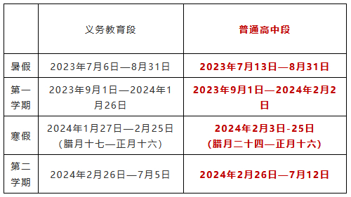 (二)普通高中学校:2024年2月3日至2月24日(农历腊月二十四至正月十五),2月25日(农历正月十六)开学。