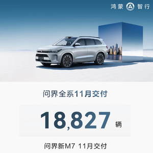 数据显示,11月问界新M7交付新车15242辆,累计交付超27000辆。问界新M7上市两个半月累计大定已突破10万辆。