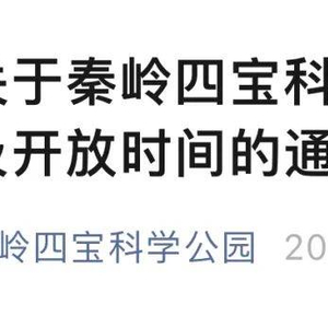 自2023年12月1日起,秦岭四宝科学公园开始执行淡季票价及开放时间。现将具体事宜通知如下: