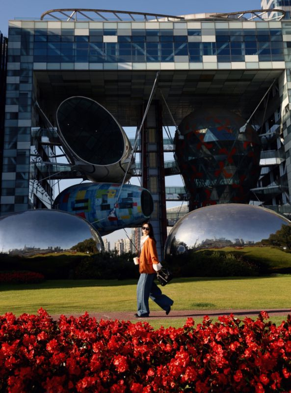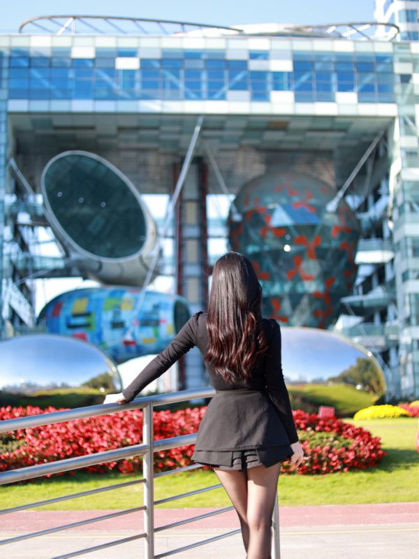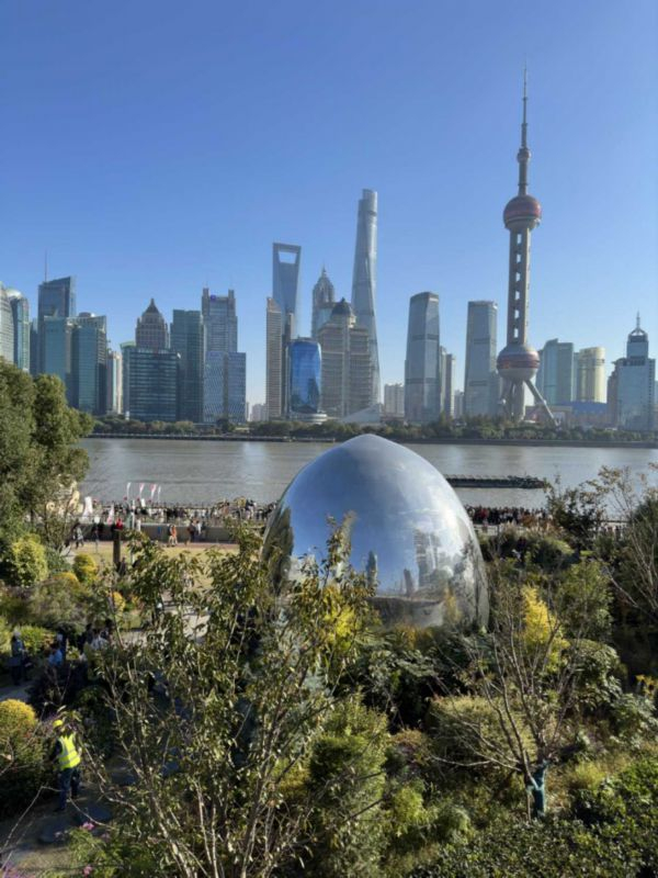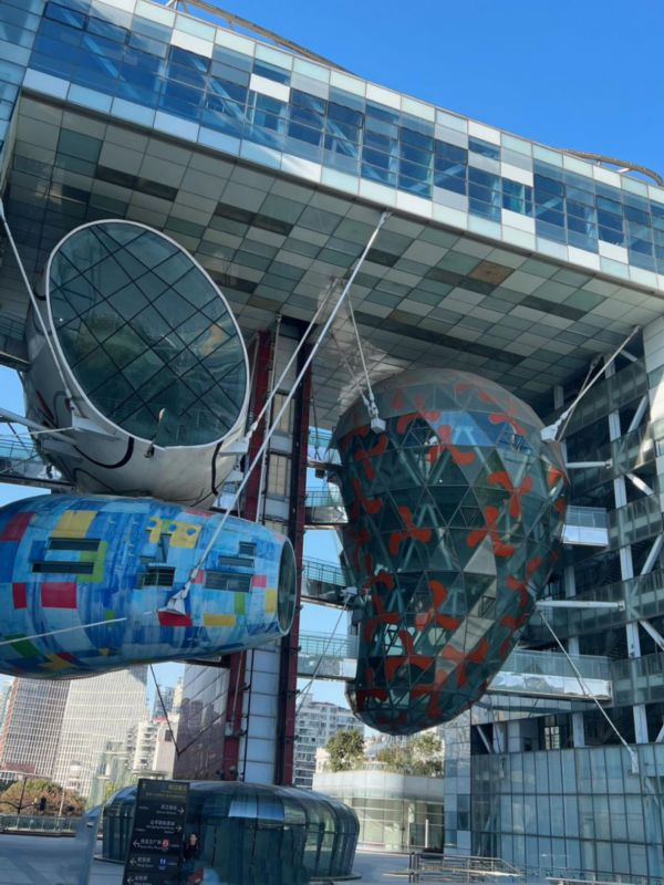 在科技感十足的银色水滴前和“魔都四件套”合个影~