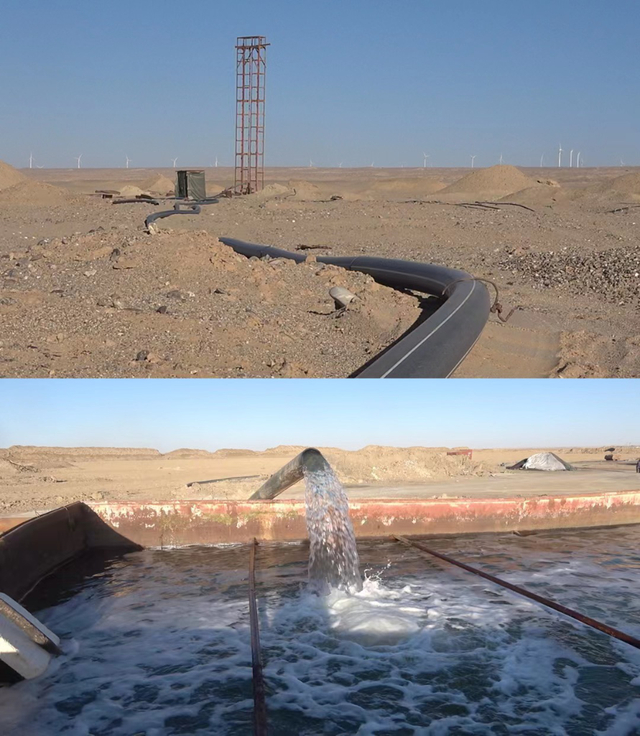 格尔木盐化(集团)公司委托青海黄河实业集团建安公司经营氯化钾项目,后者私自在都兰县沙漠地区打井抽取地下水。(督察组供图)