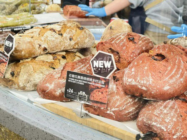 石窑面包系列是上海静安嘉里中心店的首发系列,采用自家制母种、法国T45面粉等优质原料制作,以保留传统法式风味为基础,融入自家配方蜂蜜荔枝干、软谷杂粮等创新元素。经过28小时石窑式烘焙制成的面包,外皮酥脆、内里湿软,口感湿润有弹性,比普通面包更加蓬松挺拔。