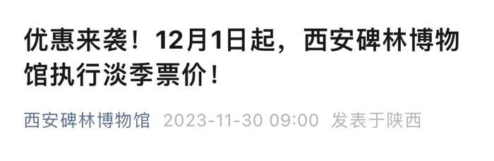 自2023年11月15日起至2024年3月14日,陕西历史博物馆调整为淡季开放时间。