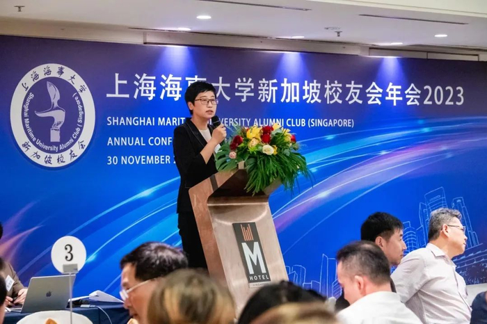 11月30日,上海海事大学新加坡校友会2023年年会在新加坡召开。中国驻新加坡大使馆公使衔参赞(教育)韩骏和三等秘书潘辰唯,上海海事大学党委副书记贺莉,上海市会计学会副会长邵瑞庆,大连海事大学和集美大学新加坡校友会代表,上海海事大学香港校友会和印尼校友联络站代表,学校校长办公室(校友联络处)、人事处(党委教师工作部)、国际交流处、交通运输学院等部门教师代表以及在新加坡港口、航运、海事、物流等领域的160余名校友出席本次年会。