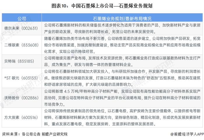 5、行业上市公司石墨烯业务规划对比