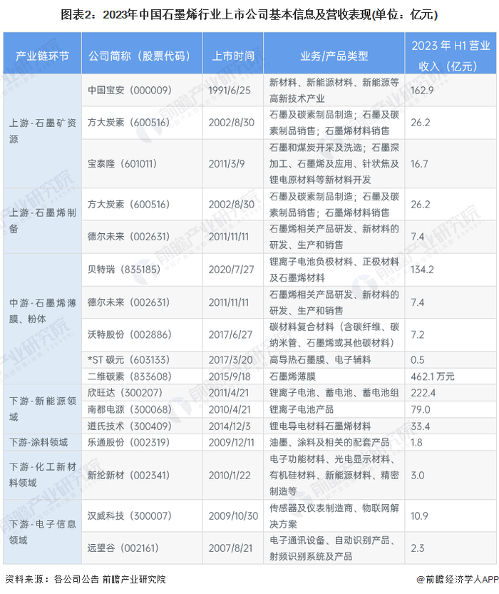 2、石墨烯行业上市公司基本信息对比
