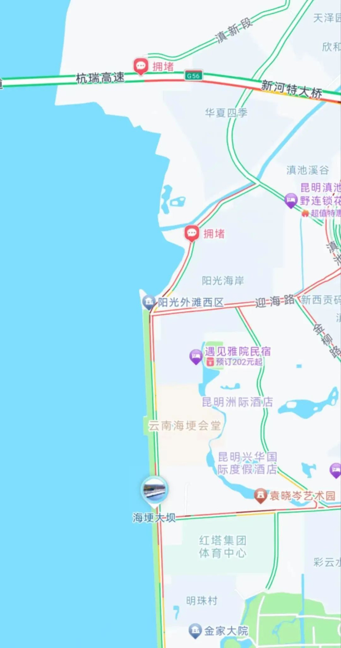 据高德地图显示,12月2日17点30分,海埂大坝附近多处拥堵。