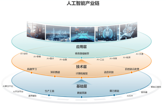 人工智能的产业链大致分为上游的基础支持层、中游的中间技术层和下游的应用层。