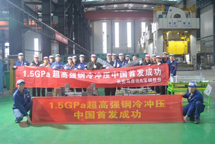 2023年11月9日,国内首个面向量产采用1.5GPa吉帕钢®冷冲压零件成功试冲,该零件采用宝钢全球首发吉帕钢®HC1000/1470DP,是宝钢股份与长安马自达、核心零部件及模具制造企业长期稳定战略合作、持续开展新材料联合研发应用、供应链深度协同攻关结出的创新硕果,将中国车企、冲压厂、模具厂和钢厂协同创新提升到新的高度,解决了世界冷冲压最高强度级别1.5GPa从材料、零件设计、模具设计、模具材料、零件成形及量产全产业链卡脖子问题,实现了先进超高强钢冷冲压技术的全球同步。