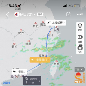飞常准app显示,东航MU721次航班执飞飞机为空客330机型,注册编号B8970。东航MU721次航班原计划08:10从上海虹桥起飞,计划10:50到达香港。但实际该航班于08:30从上海虹桥T1起飞后,于10:00备降至厦门高崎机场。12月3日17:29,MU721次航班从厦门高崎机场起飞,于18:34在香港降落。