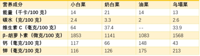 提到大白菜,总有朋友问小白菜营养如何。