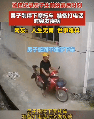 是一个农村的汉子,前一秒还在骑着摩托车准备回家。