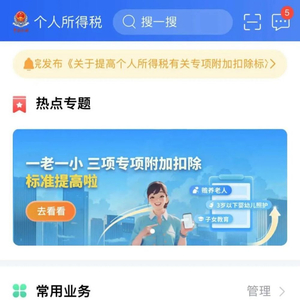 个人所得税专项附加扣除项目包括子女教育、继续教育、大病医疗、住房贷款利息、住房租金、赡养老人、婴幼儿照护七项。2023年8月国家提高了三项专项附加扣除的金额,赡养老人专项附加扣除标准从每月2000元提高至每月3000元,子女教育、3岁以下婴幼儿照护专项附加扣除标准从每个子女每月1000元提高至每月2000元,纳税人从9月申报期起即可享受。为了能够在2024年继续享受专项附加扣除的红利,纳税人需要对2024年的专项附加扣除信息进行确认。纳税人可通过个人所得税app,于12月1日-12月31日对次年享受专项附加扣除的内容进行确认。注意:2024年专项附加扣除没有变化的纳税人也需要登录个税app进行操作!一定要在12月31日前完成!确认流程如下↓下载并打开“个人所得税”APP,点击“专项附加扣除填报”模块进行填报。