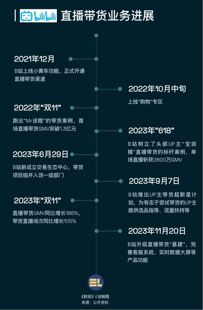 按时间线比对,2021年之前,淘宝、抖音、快手等平台直播带货业务已如火如荼,B站在2021年底入局已相对较晚,更是直到2022年底外界才逐渐见到其发力的迹象。“如果2020年那个时间点去做,可能现在整体生态会好很多。”了解B站直播带货业务的王琦凯(化名)说。