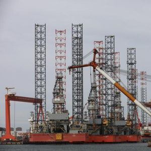 图为由中国信保辽宁分公司支持的大船集团海工工程公司石油钻井平台生产建设现场一派忙碌生产景象。李敬伟/摄