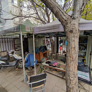 德茂小区建成于1985年,其东门与上林苑西门相连。黄阿姨的小车穿过连接门,德茂小区内第一个小修小补店家,就在围墙拐角处。店主赵大爷68岁,就是德茂小区居民,自从内退就开始经营小修小补,至今20年。原来在工厂里当钳工,手巧又好学,现在配钥匙、换锁芯、修鞋、修拉链、修车、磨刀,他全都干。“补贴点家用吧,挣不了多少钱,配钥匙最便宜才三块钱一把,干一个月挣三四千。”赵大爷心直口快,他说自己风雨无阻,只在春节休息7天。为了遮风挡雨,他搭了一个雨棚,附近房产中介又免费送了一个雨棚。“连带着给人打打广告。”赵大爷的存在,辐射了两个小区的小修小补。