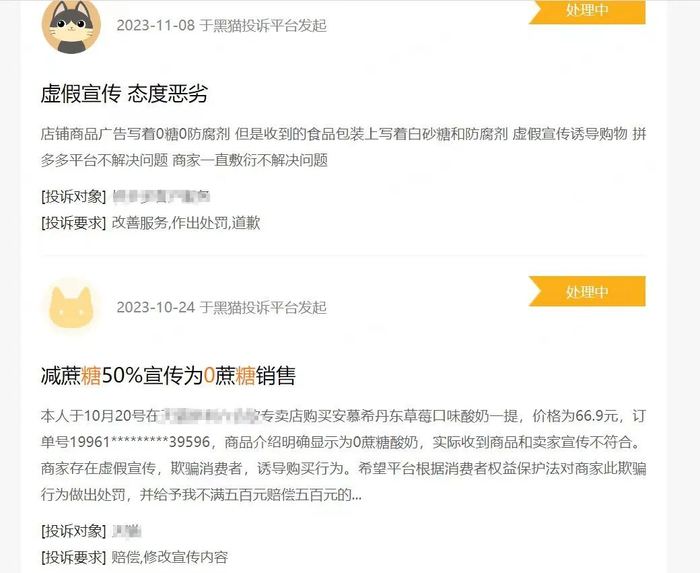 让陈昱苦恼的是,发现这两款产品的问题后,他都向平台投诉,均未得到赔偿,平台也未对商家进行处理。随后,他投诉到了12345和黑猫投诉。