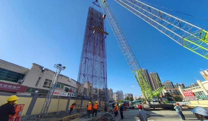车站北路站首幅地连墙钢筋笼长35.41米,总重量34.6吨,钢筋笼采用整体制作、整体吊装入槽。项目积极策划施工方案,最终于10月8日成槽,10月9日顺利吊装成功并于当日浇筑完成。