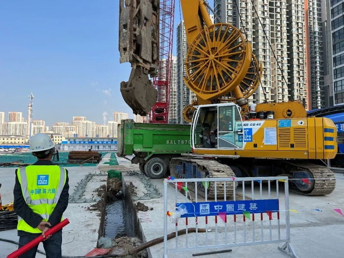 成槽机进行首幅地下连续墙成槽施工
