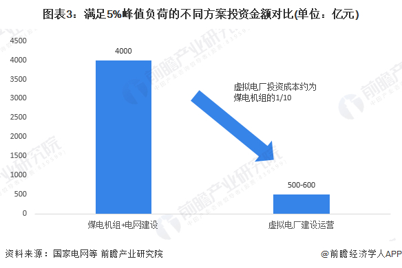 根据国家电网测算,通过火电厂实现电力系统削峰填谷,满足5%的峰值负荷需要投资4000亿;而通过虚拟电厂,在建设、运营、激励等环节投资仅需500-600亿元。此外,虚拟电厂能够有效抑制尖峰负荷对电网的冲击,延缓电源电网建设投资。