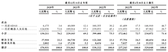 速腾聚创的收入来自向汽车、机器人及其他行业的客户销售各类激光雷达硬件,以及为客户提供激光雷达感知解决方案,该解决方案结合产品及服务(包括激光雷达的硬件、软件及相关服务)。